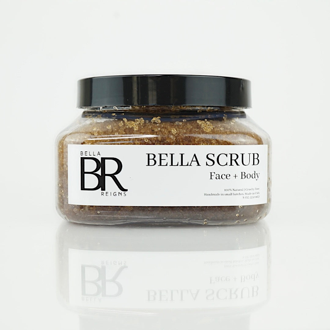 Bella scrub is an all natural brown sugar based exfoliating scrub great for the face and body. The anti-inflammatory and antibacterial properties of coconut oil and other components improve the skins texture and tone providing a gentle polishing effect which minimizes the appearance of blemishes and pigmentation. Consistent use improves circulation and promotes collagen production to diminish the appearance of fine lines, wrinkles and cellulite.